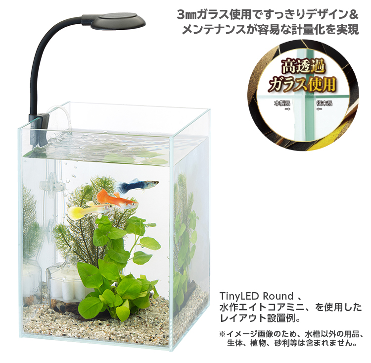 • ◯透明度の高いクリアガラスでより観賞価値を高めたベタをはじめとしたちいさな生き物の飼育およびミニパルダリウムの制作に適した小型水槽です。